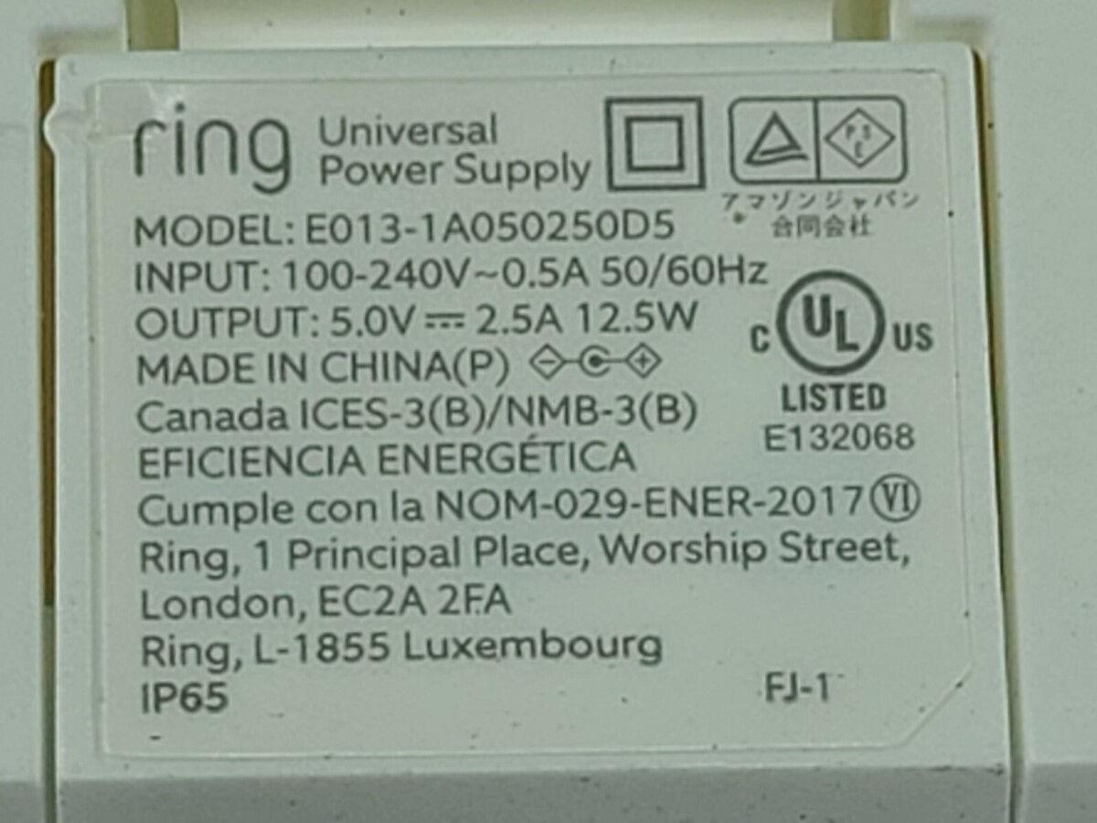 - Ring Indoor/Outdoor Stick Up Cam Power Adapter Barrel Plug E013-1A050250D5 OEM