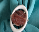 - Ring Oval Druze Smoky Brown Quartz White Enamel 925 Sterling Silver Sz 7