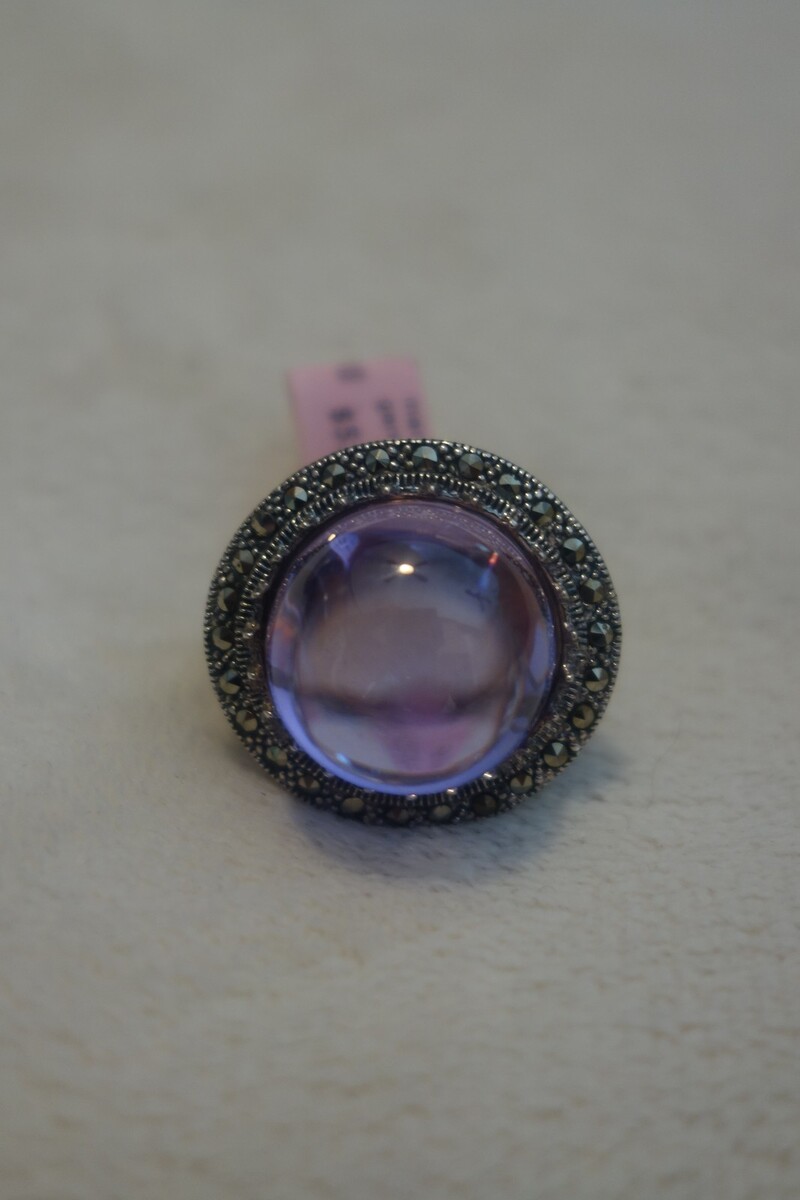 Stylish Ring With Marcasites and Simulated gems Beautifully Designed in 925 Sterling silver. Total item weight: 23.3g -