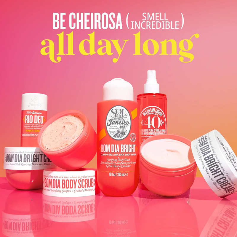 A travel-ready, visibly brightening body routine set to fly with a trio of best-loved products from the Bom Dia Bright collection.