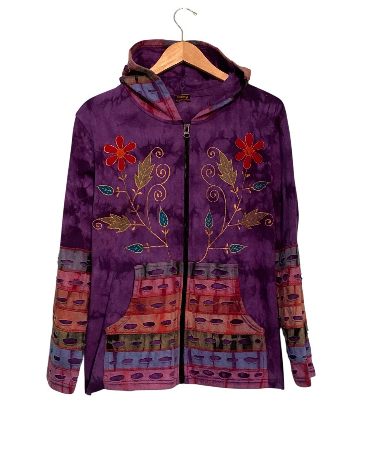 - Rising International Hoodie Purple Tie Dye Embroidered Sweatshirt Jacket 1X 2X