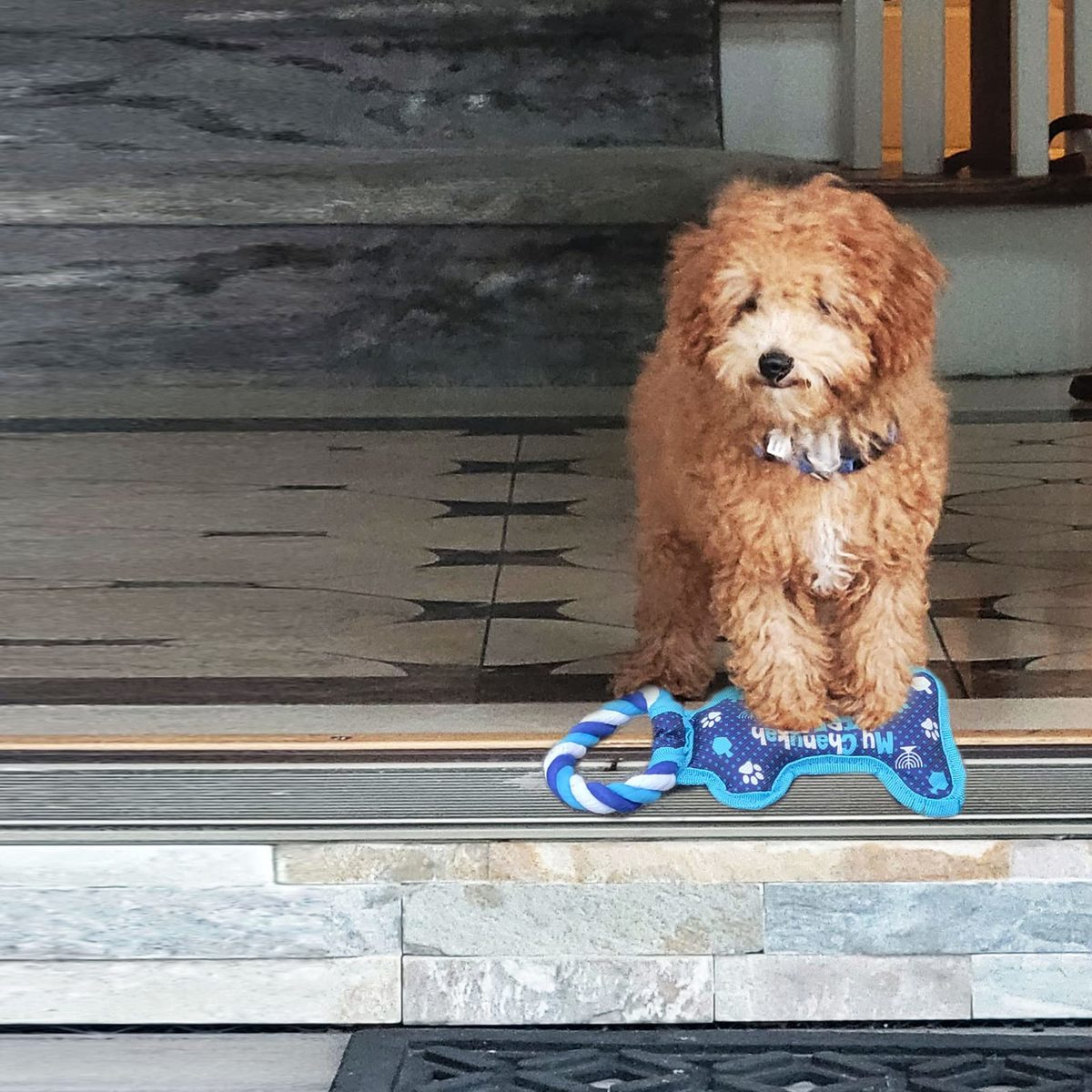 Product description: Our Chanukah Dog toy makes a fun and festive Chanukah gift. Featuring a vibrant blue color and menorah, dreidel, and paw designs, this toy is sure to be your pups holiday favorite. Get your dog in the spirit with this fun Chanukah toy. This soft, plush toy is designed just for dogs and your dog will love the squeaky sounds as they shake it around. It's just as much fun for you as it is for your pup!