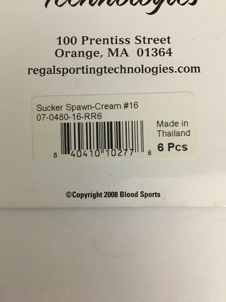 River Roe Sucker Spawn Size #16 Cream-#07-0480-16-RR6-RARE VINTAGE-SHIP N 24 HRS