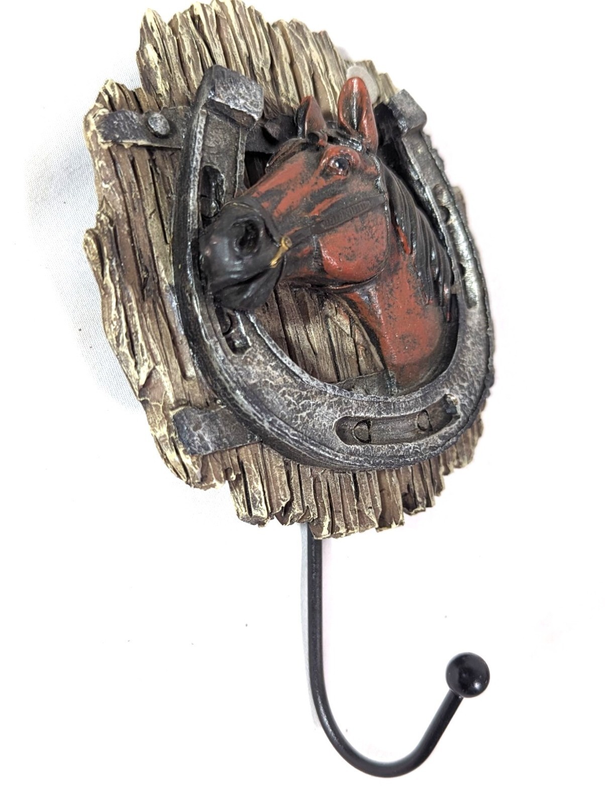 - Rivers Edge Horse Horseshoe Wall Hook Stoneware Barnwood Style 6 x 4-in Gift NEW
