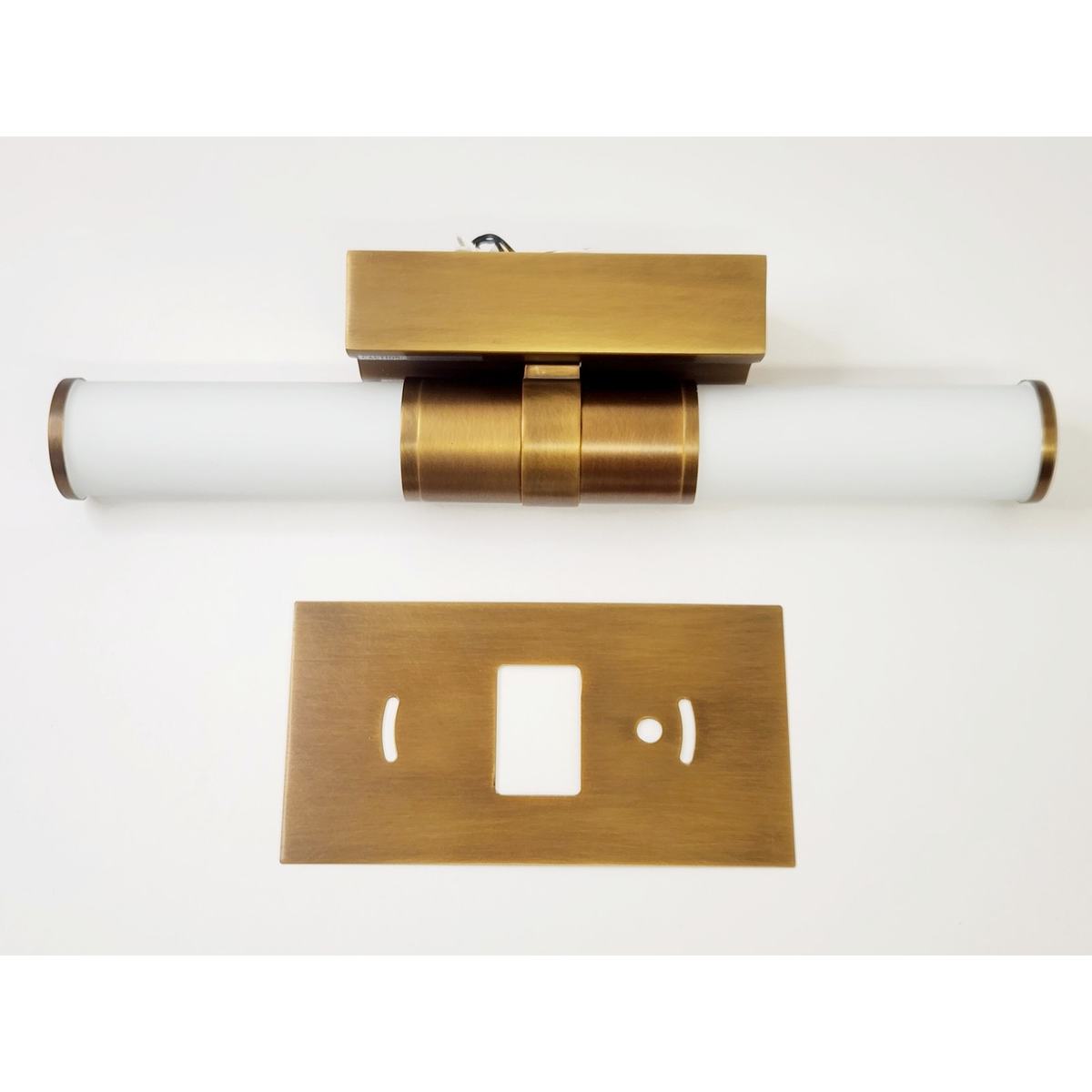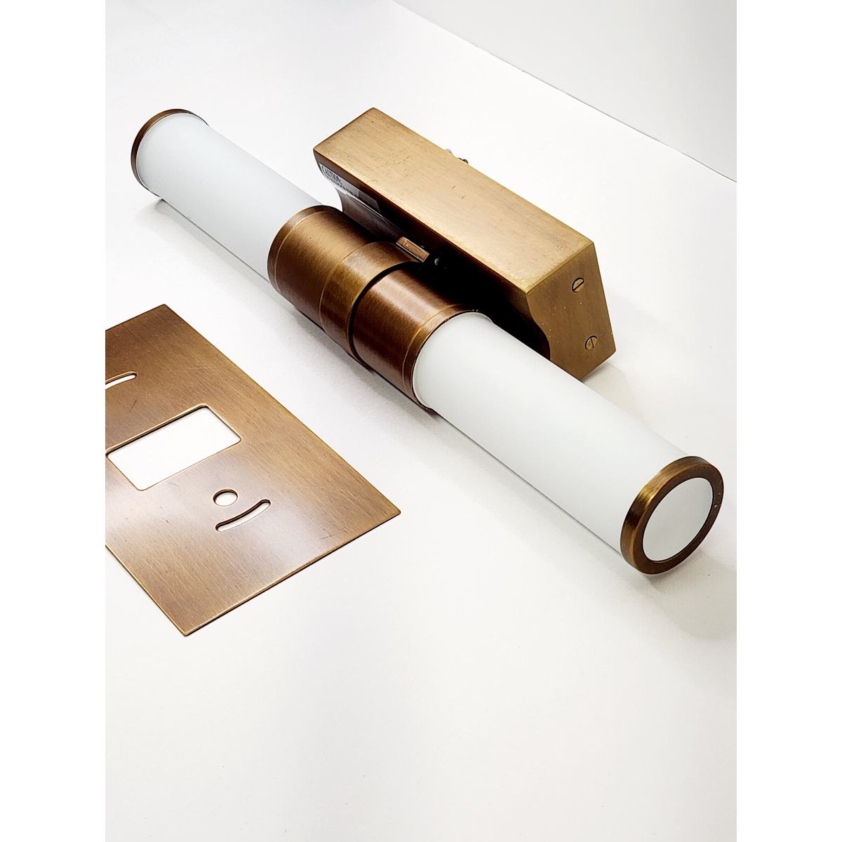 The Roderick collection is sleek with an air of distinction. Frosted glass shades provides bright light that is pleasantly diffused. - Warm Brass Finish Roderick Wall Sconce With White Frosted Glass Shades.