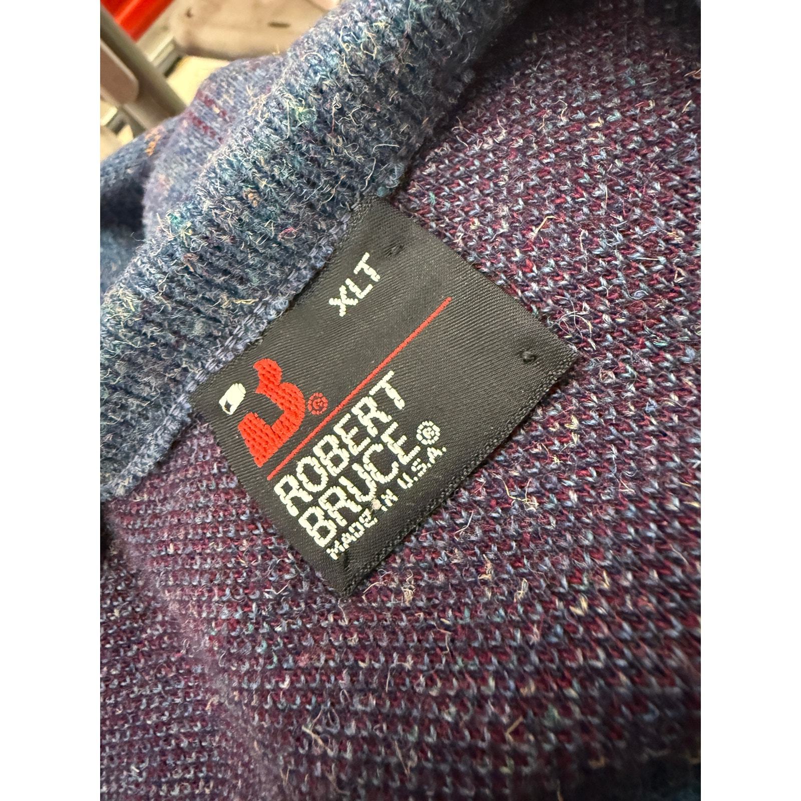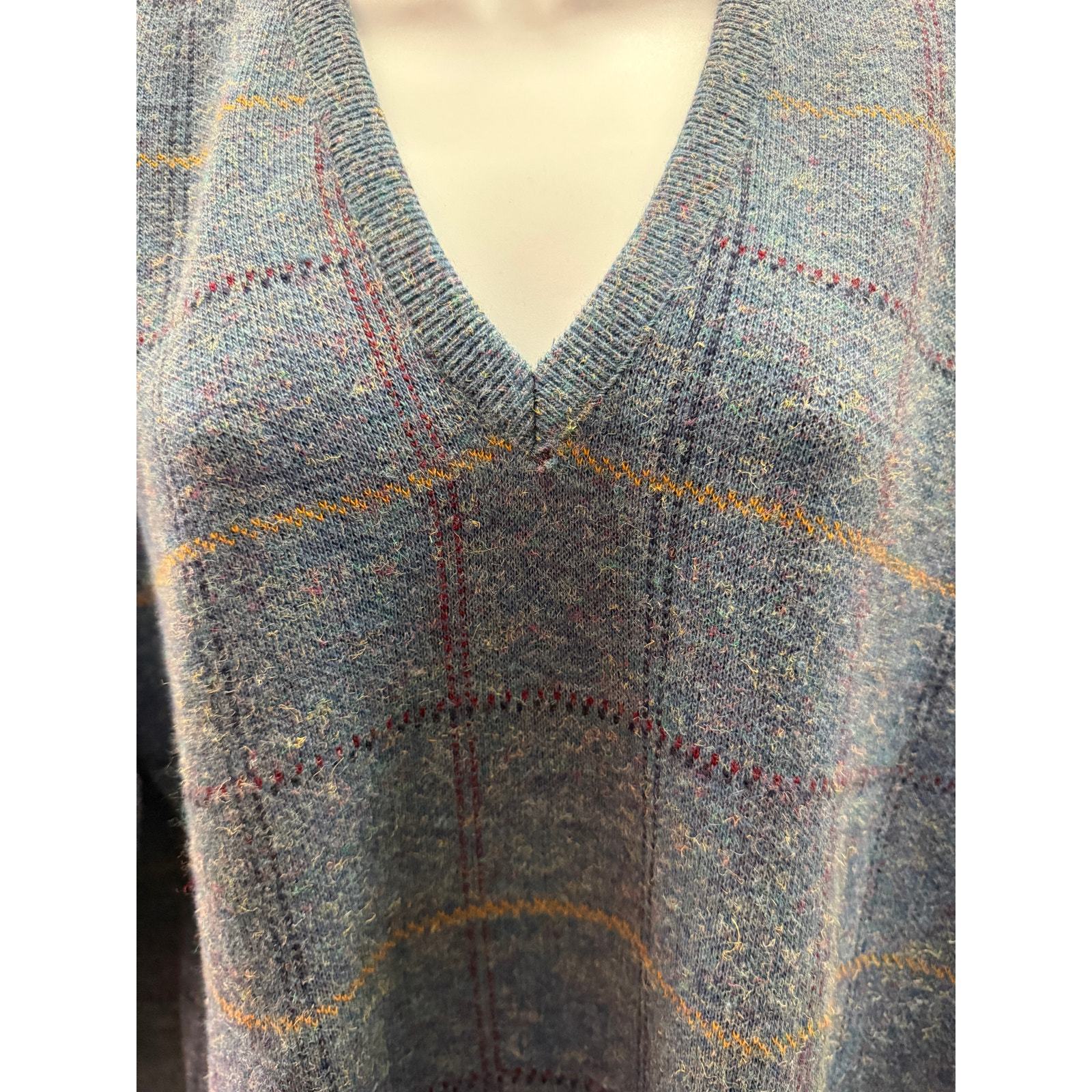 ROBERT BRUCE Made in USA Men's XL Gray Plaid V-neck Sweater