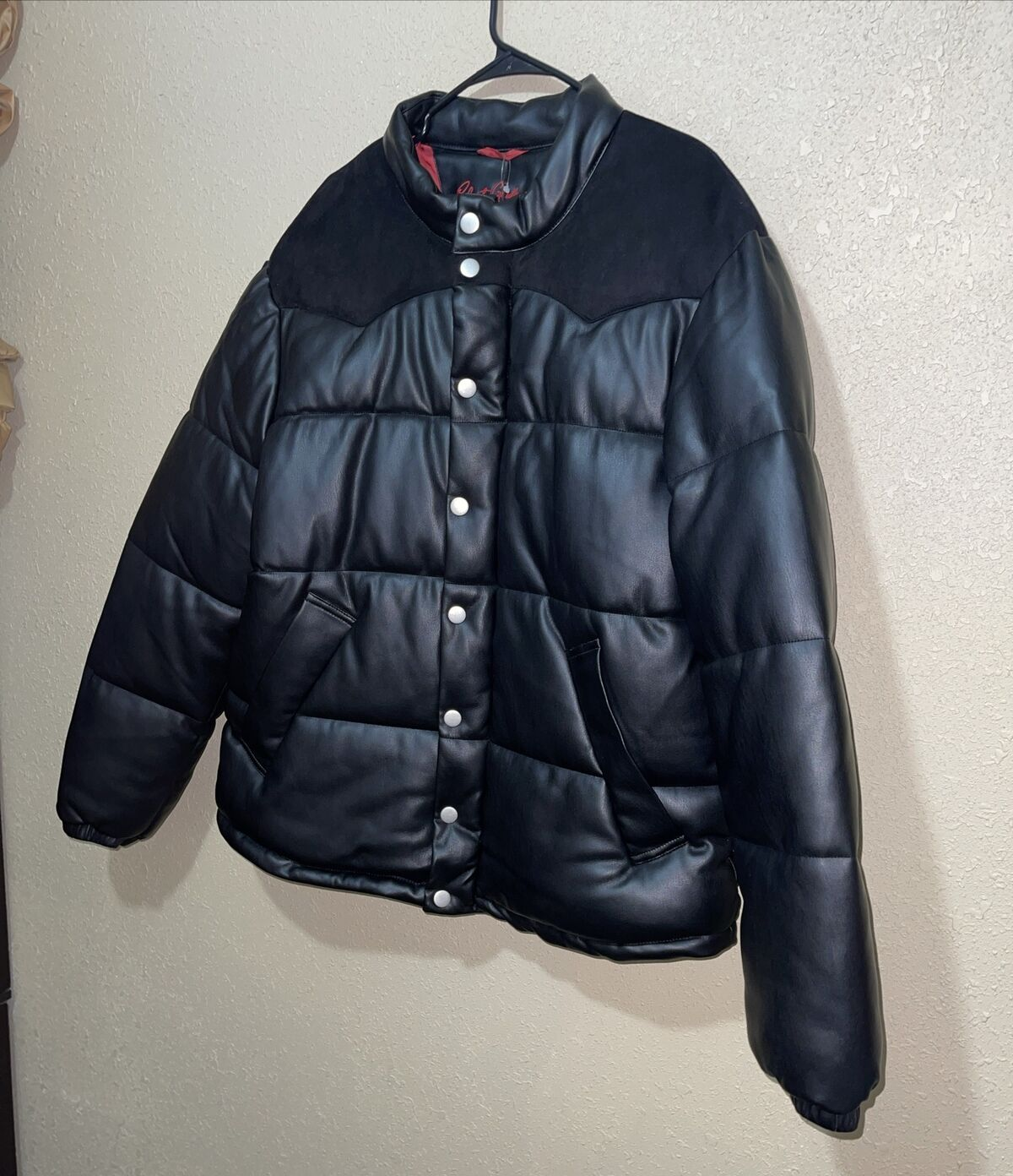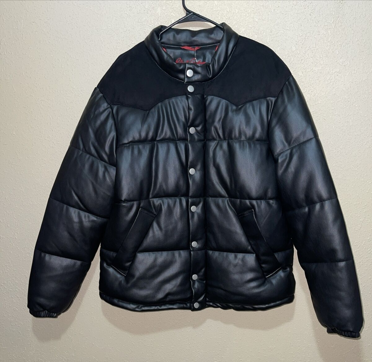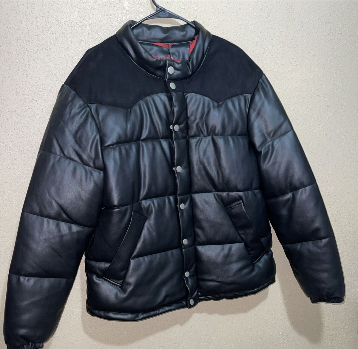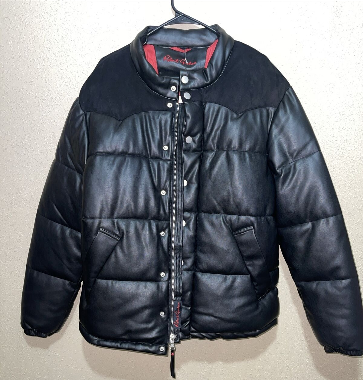 - Robert Graham Faux Leather Puffer Jacket in Black Men's SZ LARGE NEW $328