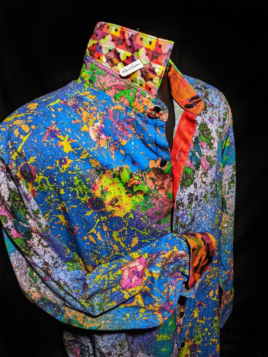 The Robert Graham Limited Edition Admiralty Arch Long Sleeve Embroidered Shirt in XL is a classic and stylish button-up shirt perfect for various occasions such as travel, parties, and casual wear. Made from a comfortable cotton blend fabric, this shirt features a geometric pattern and intricate embroidered accents. The shirt is handmade, boasts a vintage look, and is part of the Summer Comfort collection by Robert Graham, ensuring both quality and a unique design for the modern man.