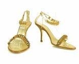 - Roberto Cavalli gold & tan leather chain sandals slides ankle strap sz 37