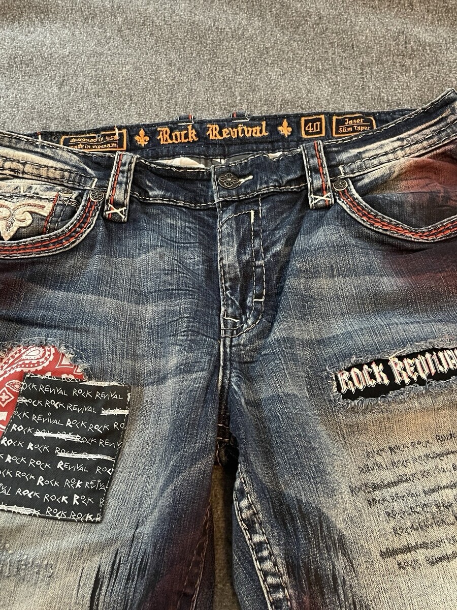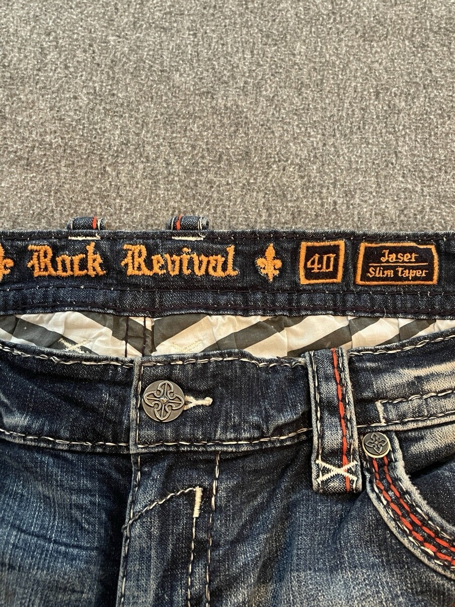 - Rock Revival Jaser Slim Taper Rock Exhibition Denim Jean Men's Size 40