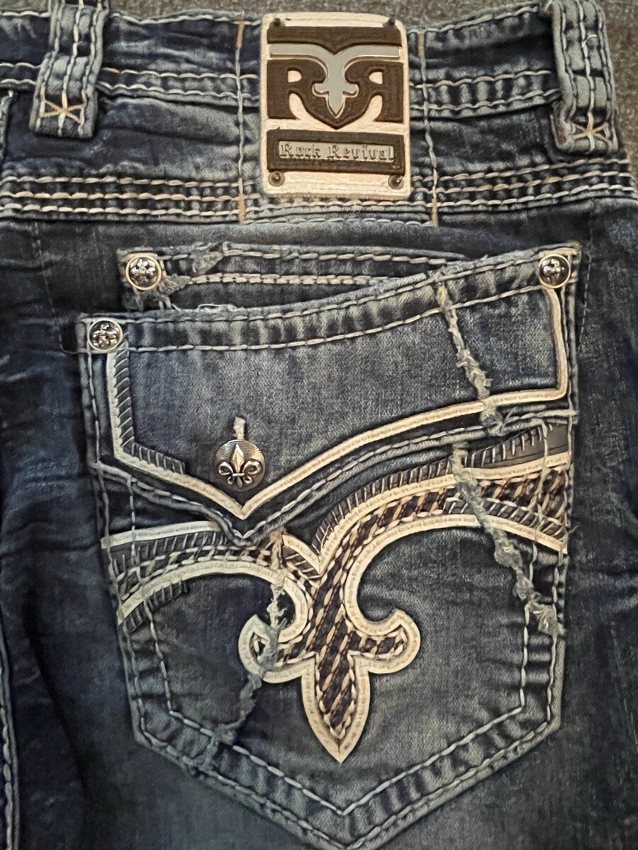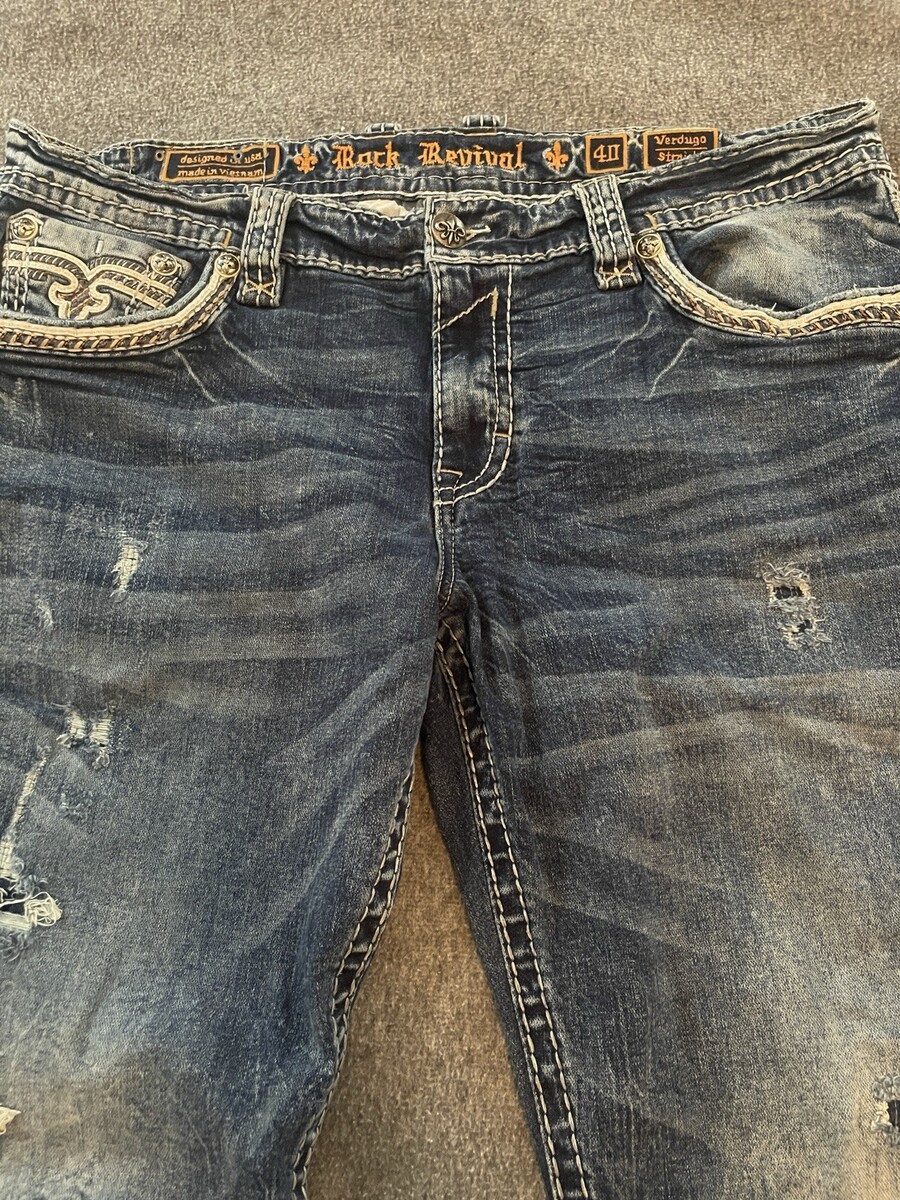- Rock Revival “Verdugo” Mens Acid Wash Mens Straight Jeans Distressed 40x32