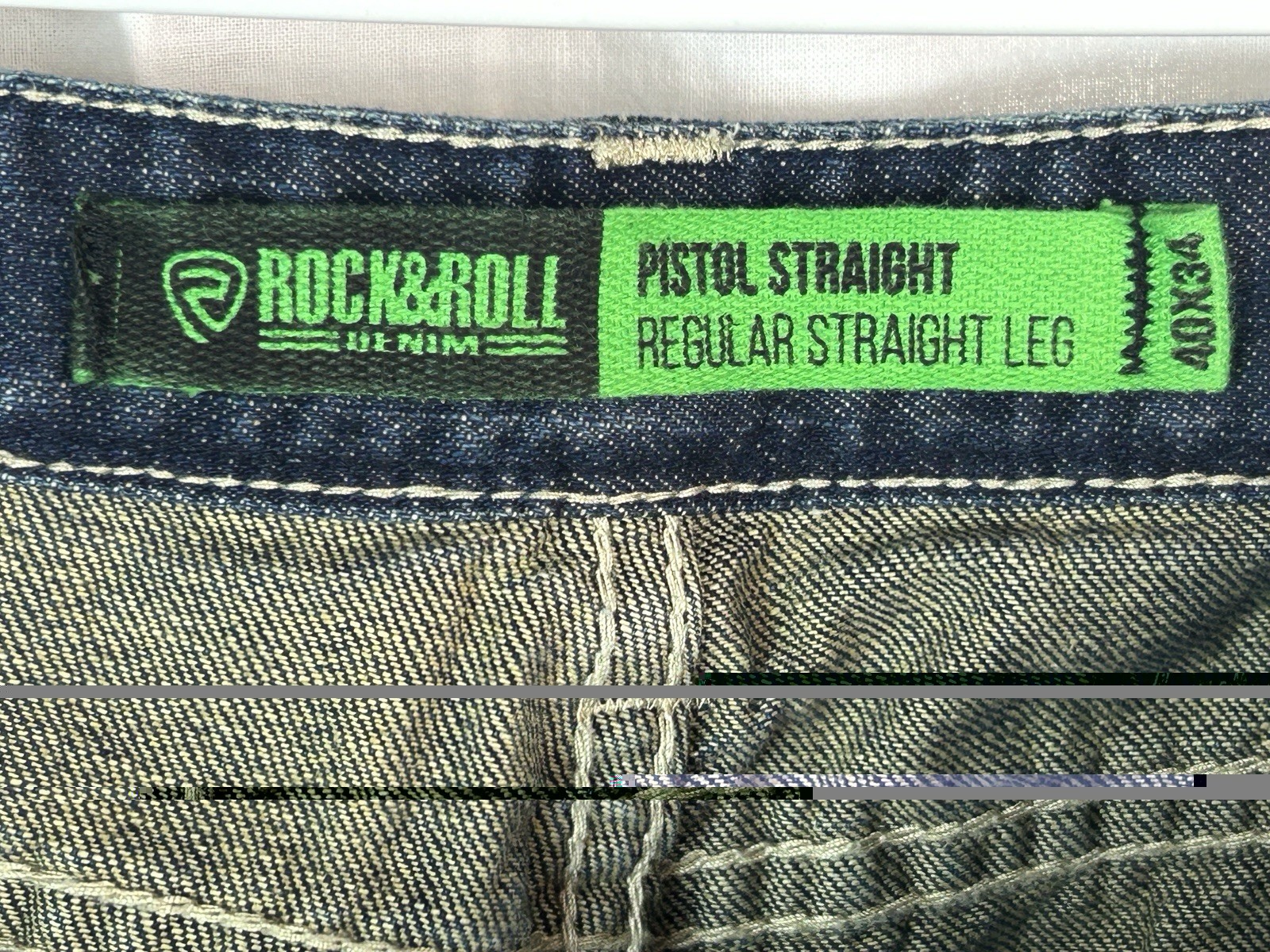 Up for sell is a Rock Roll Jeans Mens 40x32 Blue Pistol Straight Leg Regular