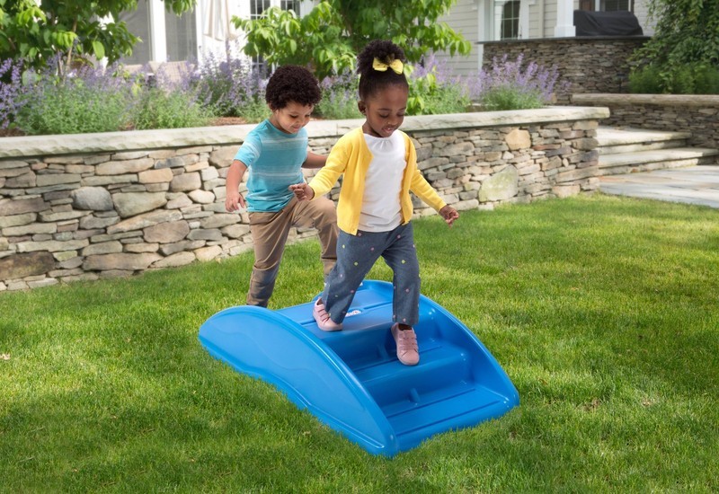 It is a Rocker! It is a Bridge! Kids love sharing this rocking action ride that encourages balance and imagination! There is room for up to 4 riders and two seat levels accommodate different body sizes. Molded-in grips allow kids to hold on providing stability and comfort on even the rockiest rides. Flip it over for instant step climbing fun. The molded-in, textured staircase provides grip while helping kids develop coordination and balance.