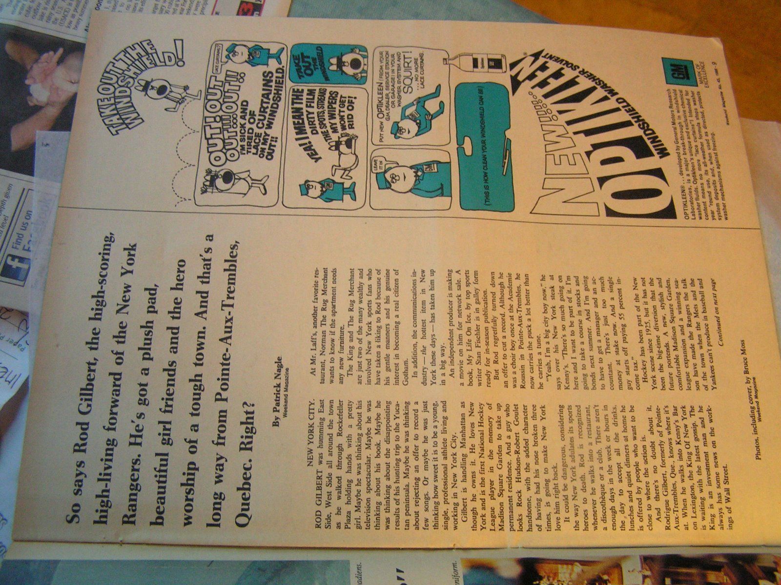 - Rod Gilbert NY Rangers Magazine / Newspaper Picture & Article October 26, 1968