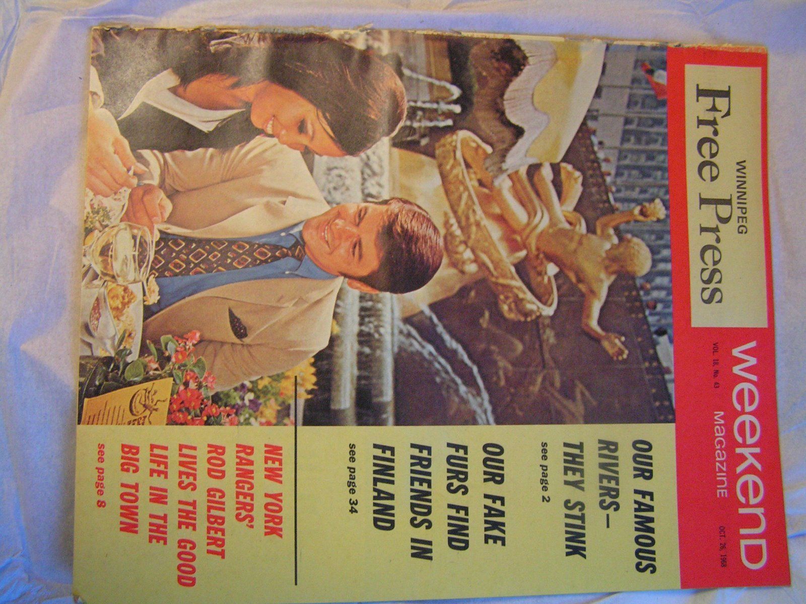 You are bidding on 2 vintage and very rare pages taken from the Winnipeg Free Press weekend magazine dated October 26, 1968. The first is a picture of him on the ice and at home, the second is the article. Perfect gift for that NYR fan!