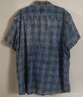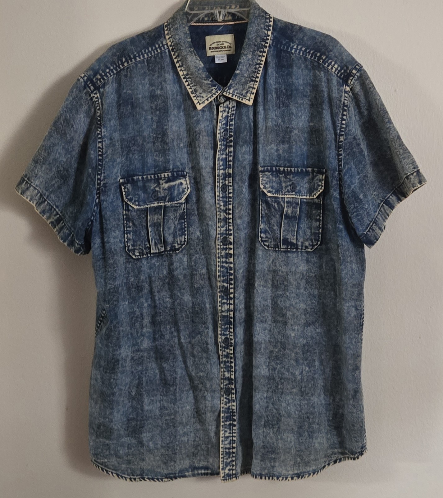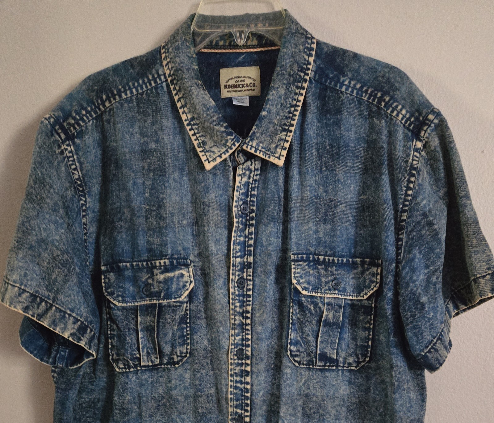 - Roebuck & Co Denim Shirt Mens XXL Acid Wash Short Sleeve Button Front Pockets