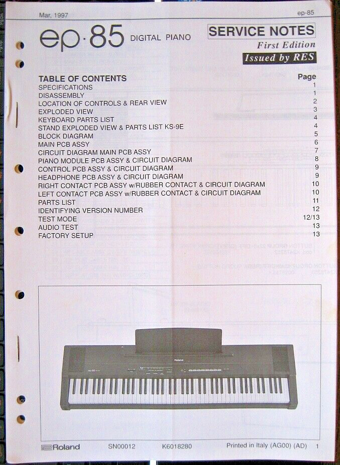 - Roland EP-85 Digital Piano Keyboard Original Service Manual Schematics Booklet