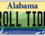 Roll Tide Alabama Novelty Mini Metal License Plate Tag. 2.2" x 4" high gloss novelty mini metal license plate tag. Made of the highest quality aluminum for a weather resistant finish. It is lightweight and durable. Pre-drilled holes for quick and easy mounting on any vehicle, or add a ribbon, wire or string to instantly turn this license plate into a sign and display it on a wall or door. Individually shrink-wrapped and proudly made in the USA.