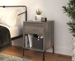It's time to stop losing sleep over poor decor and give your bedroom a little face lift with the rustic, yet refined, Rolland collection. This simplified take on utilitarian forms is edgy enough to take on industrial spaces with a nod toward sophisticated elegance. The Nightstand features a spacious drawer for bedside belongings and is constructed from durable MDF and engineered wood atop black powder coated metal legs. An open storage space below the drawer presents the perfect place for books and allows ample space for personal items, while the cut-out handle gives the Nightstand a sleek, modern persona. This nightstand ships flat to your door. Two adults are recommended for assembly. Assembled dimensions: 17.7'W x 17.7'D x 26'H. Top and open shelf can each hold up to 40 lbs. Drawer can hold up to 15 lbs.