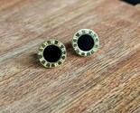 Roman Numeral Stud Earrings Gold Black Dot Round Designer Style 7/16 inch