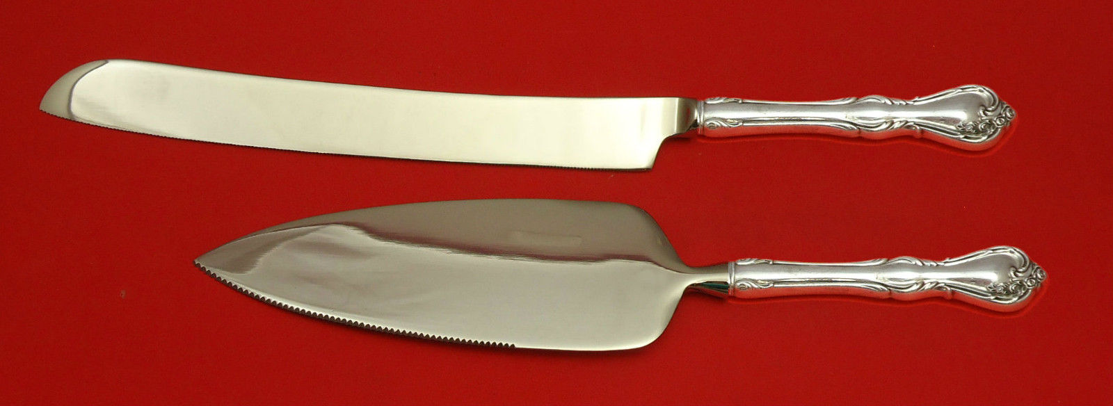 Sterling Silver CUSTOM MADE HOLLOW HANDLE WITH STAINLESS TWO PIECE WEDDING CAKE SET WHICH INCLUDES: