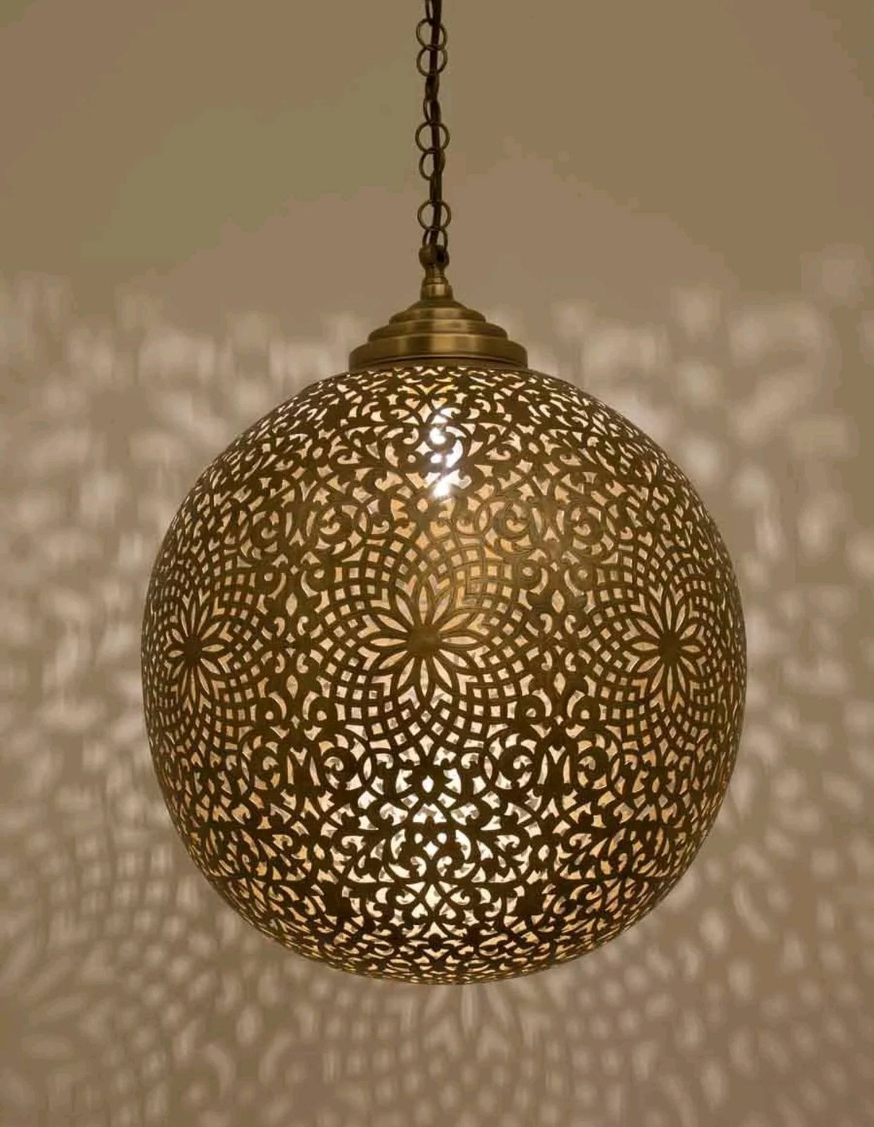 - Rose Of The Moon Engraved Moroccan Handmade Pendant Light In Antique Brass