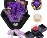 ?Wedding Gifts?This gift set is well arranged with a bunch of 18 PCS purple roses and preserved fake roses flowers and a fashionable LOVE gold necklace
