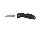 Features Leymar handle, stainless steel half-serrated blade with oval hole for easy one-handed opening, and clip. Measures 4 closed, 6-7/8 open. Bulk packed.