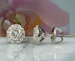 Round Cut 0.80 Carat Natural Diamond Pave Stud Earrings 14k White Gold Women's