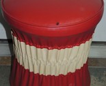 - Round Footstool 16" Red & White Naugahyde Vinyl Mid Century Retro Ottoman burn