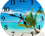 Round Wall Clock Silent Non-Ticking Clock 10 Inch, Turquoise Ocean Blue Beach S