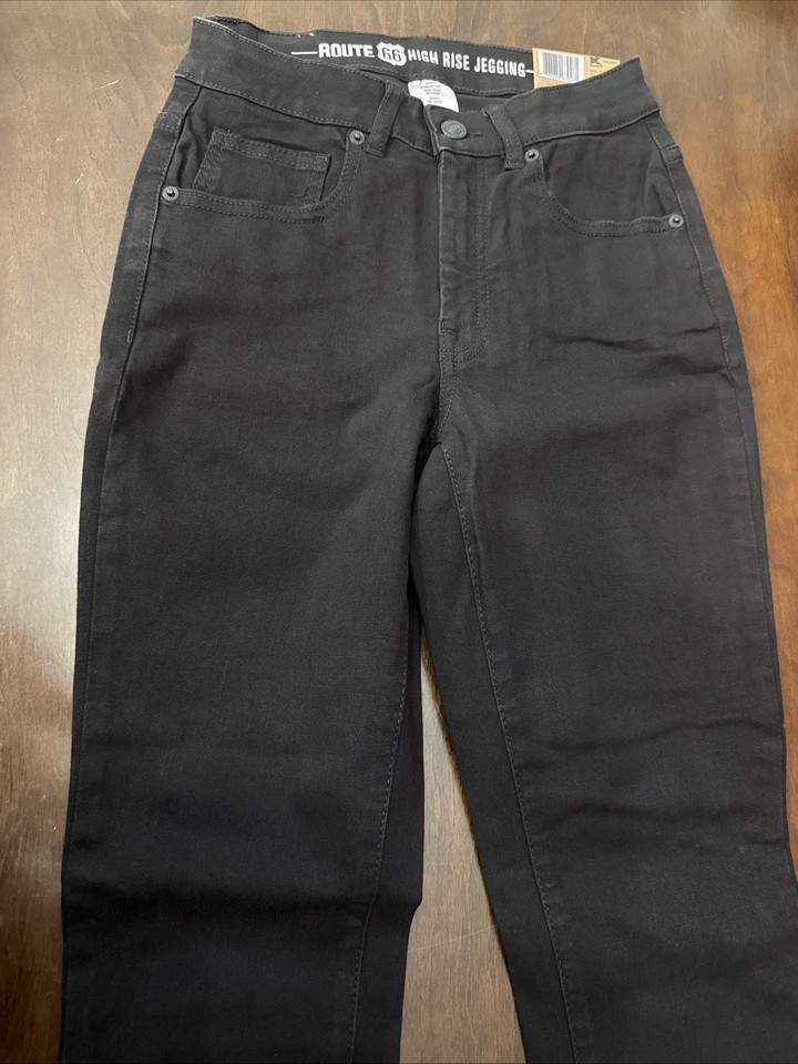 The Route 66 High Rise Jeggings in size 0 Short are a sleek and stylish option for women looking for a comfortable and flattering fit. Made by Route 66, these black jeggings feature a high rise waist for a chic and trendy look. The regular size type ensures a good fit for those looking for a size 0 short waist. Perfect for casual wear, these jeggings combine the comfort of leggings with the style of jeans, making them a versatile addition to any woman's wardrobe.