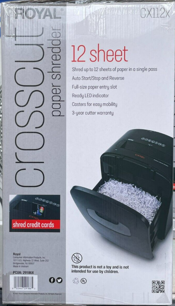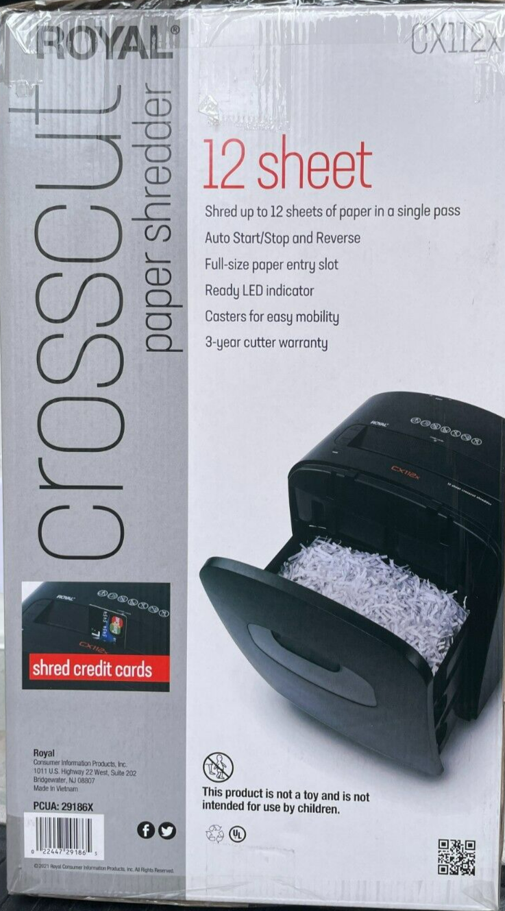 Cross Cut - 12 Per Pass - for shredding Paper, Credit Card, CD - 0.156" x 1.625" Shred Size - 9" Throat - Black