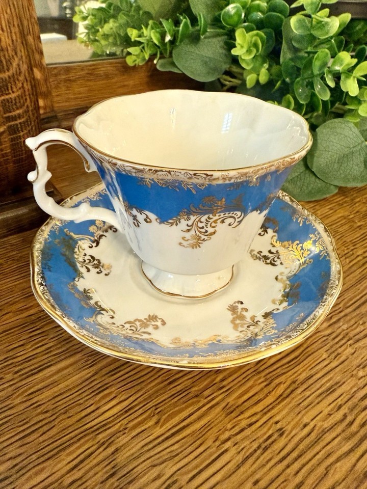 Add a touch of English elegance to your tea time with this exquisite Royal Albert ?Regina Series? Aquamarine tea cup and saucer set. Crafted from fine bone china in England, this vintage treasure brings a floral charm that?s perfect for collectors, cottagecore enthusiasts, or anyone who appreciates timeless beauty.