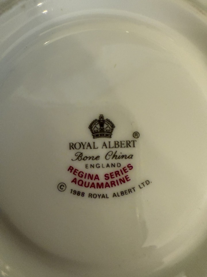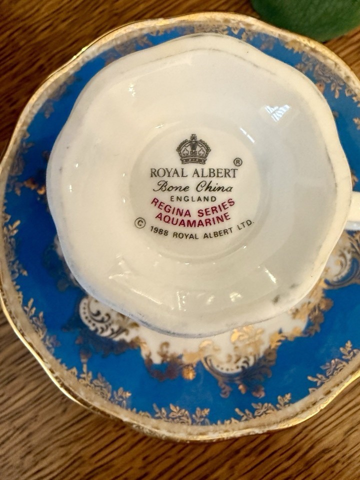 - Royal Albert 'Regina Series' "AQUMARINE" Tea Cup and Saucer made in England