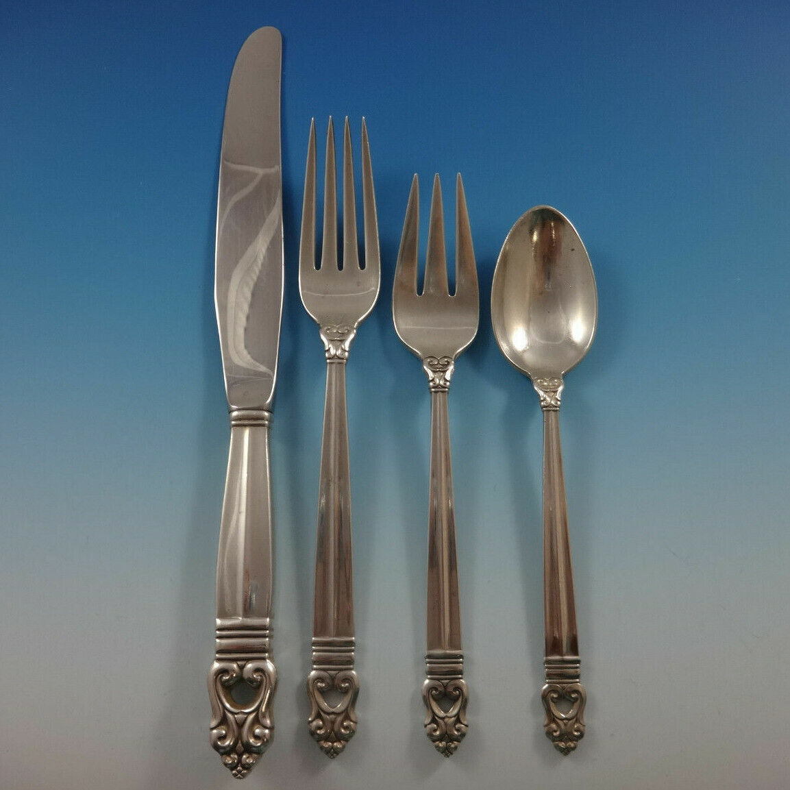 COMPLETE FLATWARE SETHOSTESS HELPERSHOLLOWWARE / TEA SETSMUSEUM QUALITY/FIGURAL SILVERFINE ESTATE VINTAGE JEWELRYMID-CENTURY MODERNSILVER FLATWARE SILVERWAREBuccellatiChristofleGeorg JensenNew Georg Jensen HollowwareNew Georg Jensen JewelryGorhamInternationalLuntMichael Aram - NewReed BartonTiffany Co.TowleWallaceWhitingPLACE SETTINGS