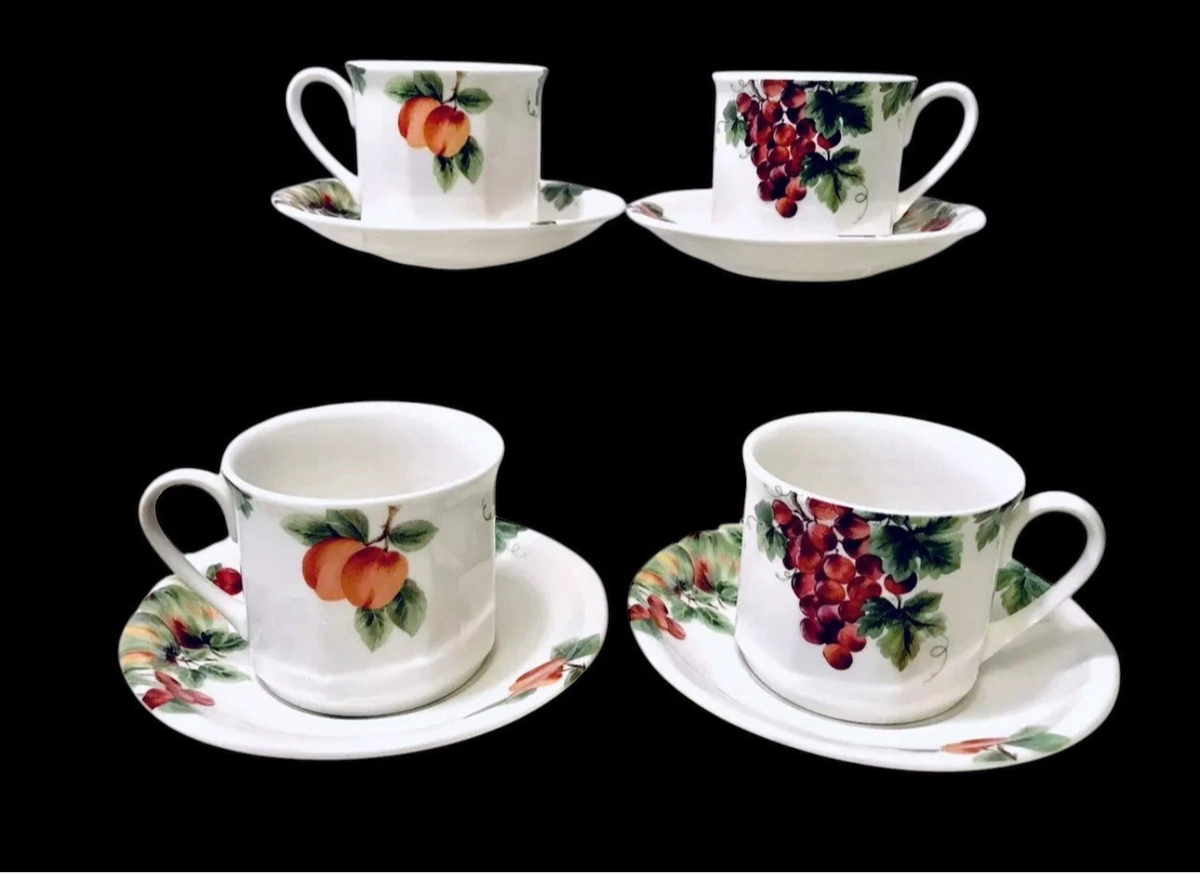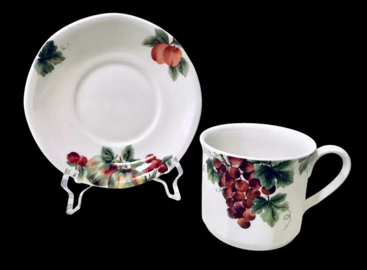 - Royal Doulton 1994 Everyday Fine China Vintage Grape 2 Cups & 2 Saucers Set 1193