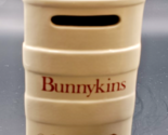 The Royal Doulton Bunnykins Bank is a charming coin bank featuring a multicolor rabbit design, made of glossy porcelain. Measuring 4 inches in length and 4-1/4 inches in height, this original collectible from the Bunnykins Figurines collection is a unique addition to any collector's display. Unboxed for easy display, this coin bank showcases the craftsmanship and detail characteristic of Royal Doulton's products. With a width of 3 inches, this nostalgic piece is sure to bring a touch of whimsy and charm to any collection.