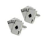 - ROYAL FLUSH CUFFLINKS Cards Poker NEW w GIFT BAG Pair Men's Jewelry Silver Tone