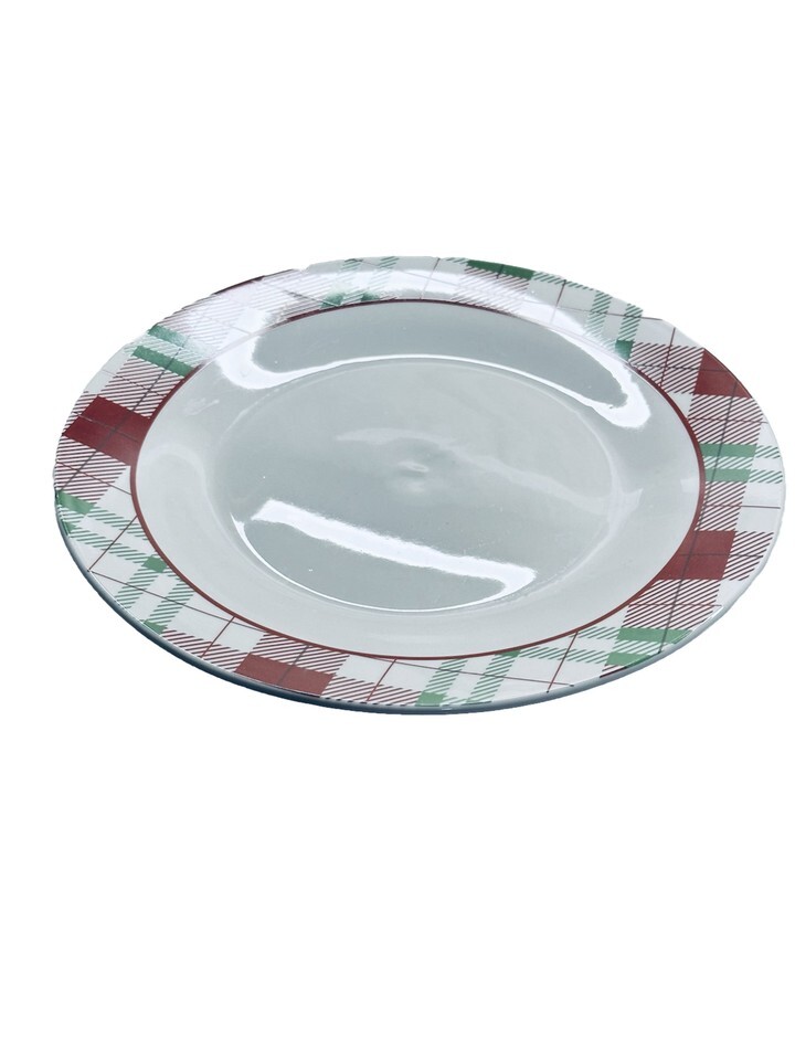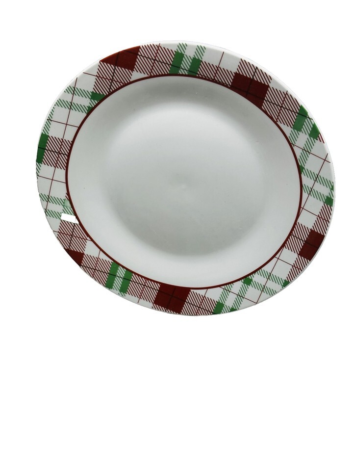 - Royal Norfolk Christmas Holiday Plaid Themed 10.5” Stoneware Dinner Plate