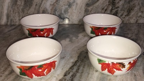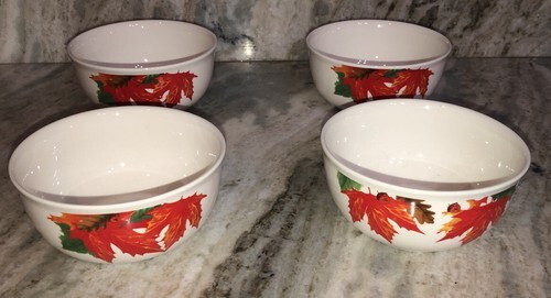 - Royal Norfolk Set of 4 Bowls Fall Leaves & Acorns Autumn Soup Cereal-SHIP24H-NEW