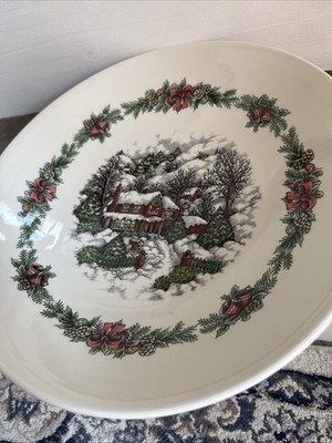 - Royal Stafford Cottage Snow Village Christmas Tree Large 13.5” Serving Bowl ~New