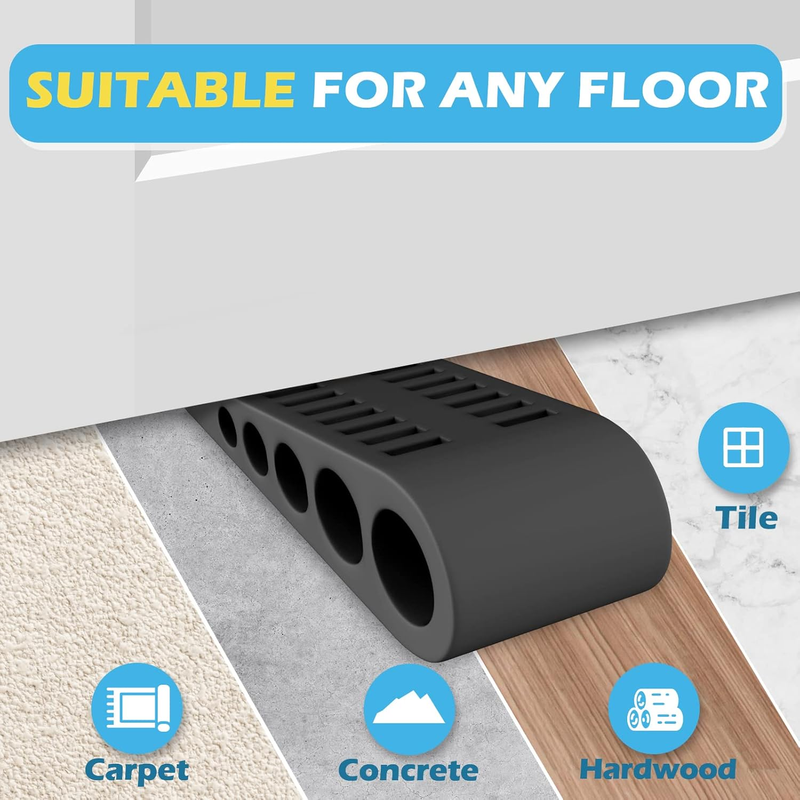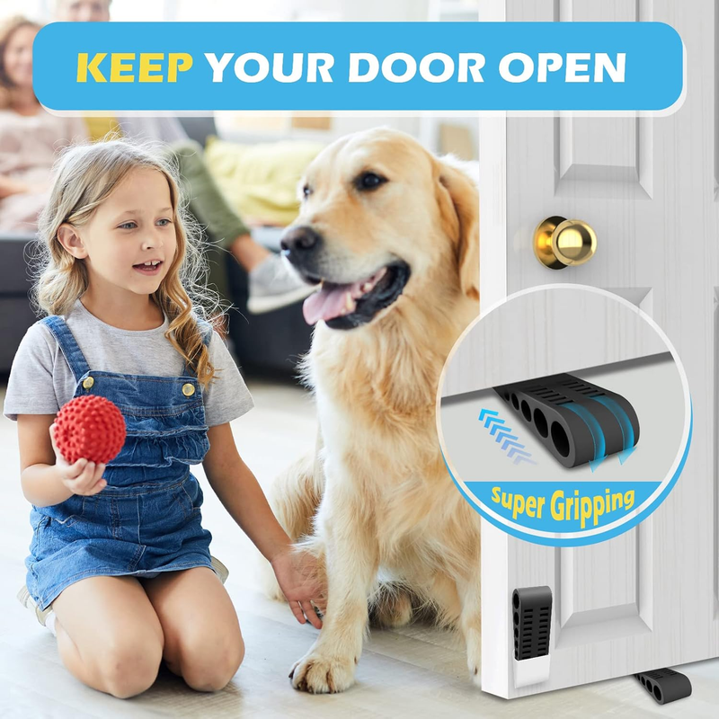 - Rubber Door Stoppers for Bottom of Door - 4 Pack Door Stop Wedge with Holder Hea