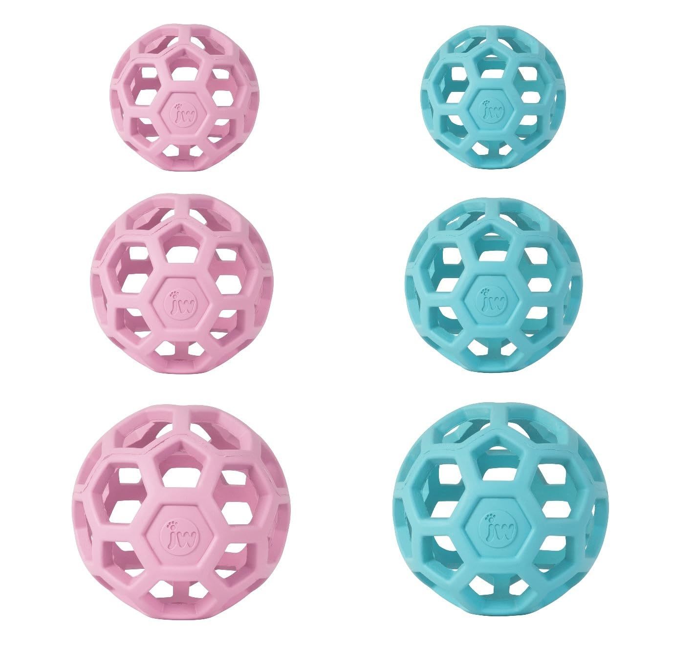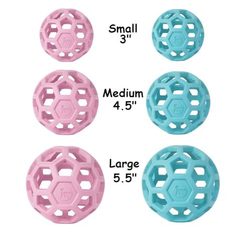 Rubber Roller Dog Toy Treat Hole Stuffer Brain Stimulating Challenge Puzzle Ball Our Rubber Roller is a fun, versatile puzzle dog toy that lets dogs play in multiple ways! Made from durable soft, stretchy natural rubber, the open ball features a unique open design that makes it easy to stuff a dog's favorite treats, kibble, other small toys, ice cubes, or whatever else you can think of to create mentally challenging puzzle experience for dogs. As a dog works to remove treats of different shapes and sizes from the Rubber Roller they develop problem-solving skills and increase their mental abilities. Natural rubber is gentle on a dog's gums as they chew and teethe. Available in a variety of sizes, the Rubber Roller can be used as a training aid or for fetch, toss, tugging, chew toy and puzzle treat time. A versatile toy for dogs of different ages and breeds. Stuff with treats or small toys. Keeps bored dogs occupied. Provides mental stimulation. Made from durable natural rubber. Gentle on your dog's mouth. Available in pink or blue. Small = 3" / Medium = 4.5" / Large = 5"