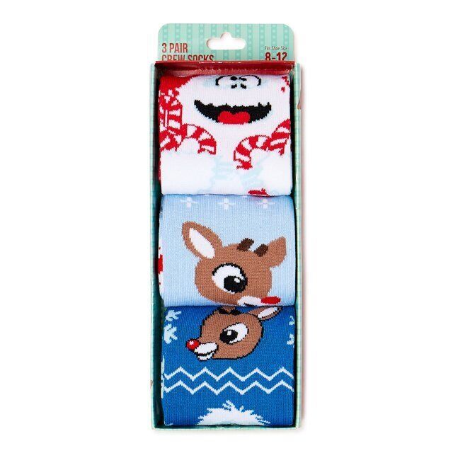 - Rudolph Men's Crew Socks, 3-Pack Fit Shoe Size 8-12 Multicolor
