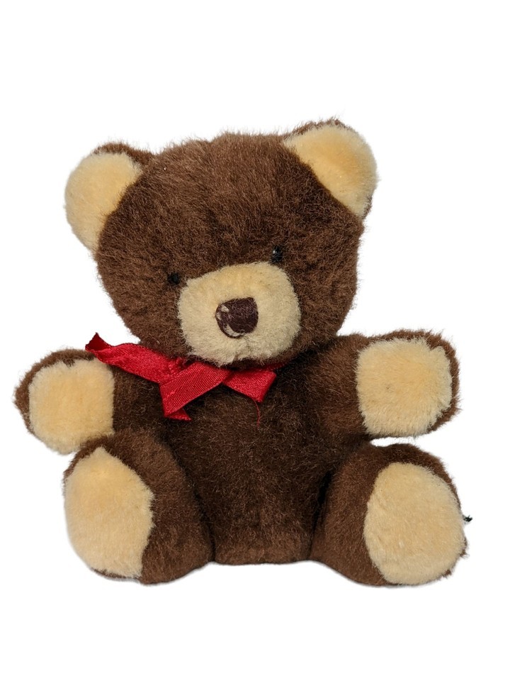 - Russ Berrie Brown Olde Fashined Teddies Plush Red Bow Stuffed Animal 5.25"