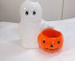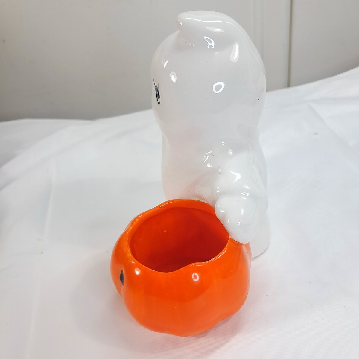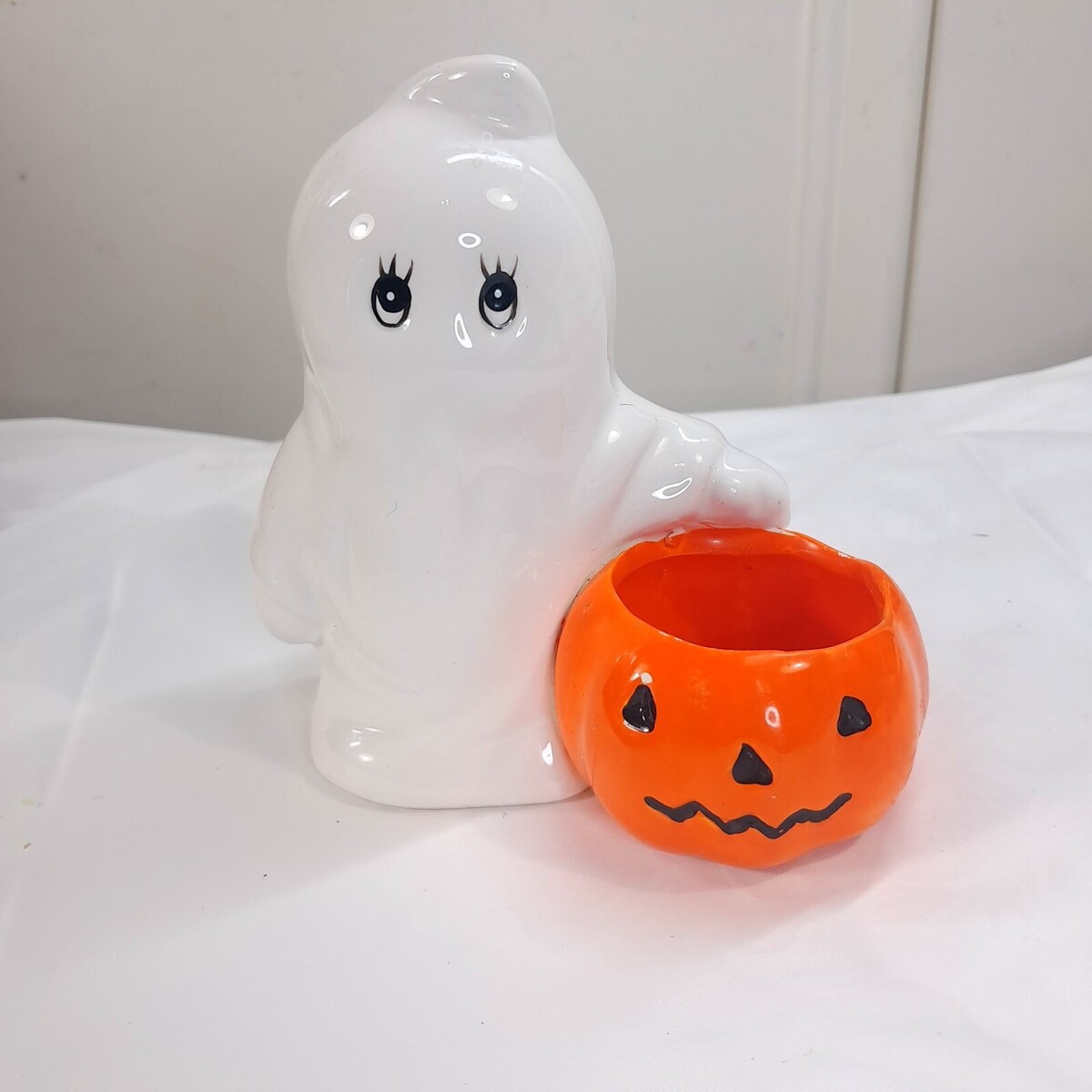 - Russ Ghost Pumpkin Ceramic Candle Holder Halloween Tealight Whimsical Vintage