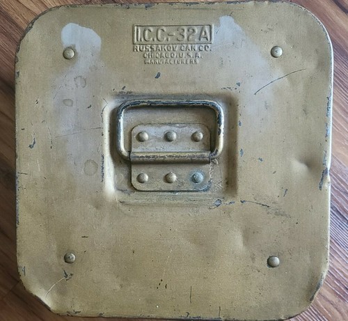 Top is marked I.C.C. - 32A ~ Russakov Can Co., Chicago, USA Manufacturers