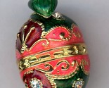 Russe Faux Oeuf Pendentif Fendu W/Transparent Cristaux, Décor Vert, Rose, Or &