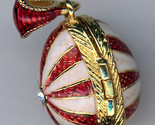 Russe Faux Oeuf Pendentif W/Transparent Cristaux, Or Volutes, Rouge et Or Bande